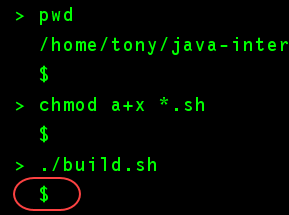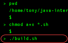 今からビルド・スクリプト build.sh を起動しますが、その前にこのスクリプトの実行許可が設定されていることを確認する必要があります。