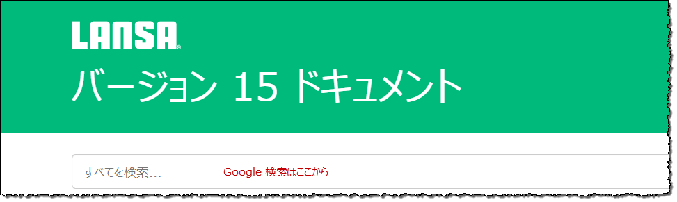 Google 検索の入力ボックスがドキュメントのメインのコンテンツまたはホームページに表示されます。この検索は LANSA ドキュメントのみに限られていますので、別サイトの関係ないドキュメントが検索されることはありません。