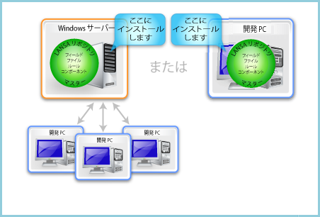 ビルド・コンピューターとして、クライアント・コンピューターの 1 台、もしくは Windows サーバーを指定する必要があります。詳細は、「1.2.8 Windows ビルド・コンピューター」を参照してください。