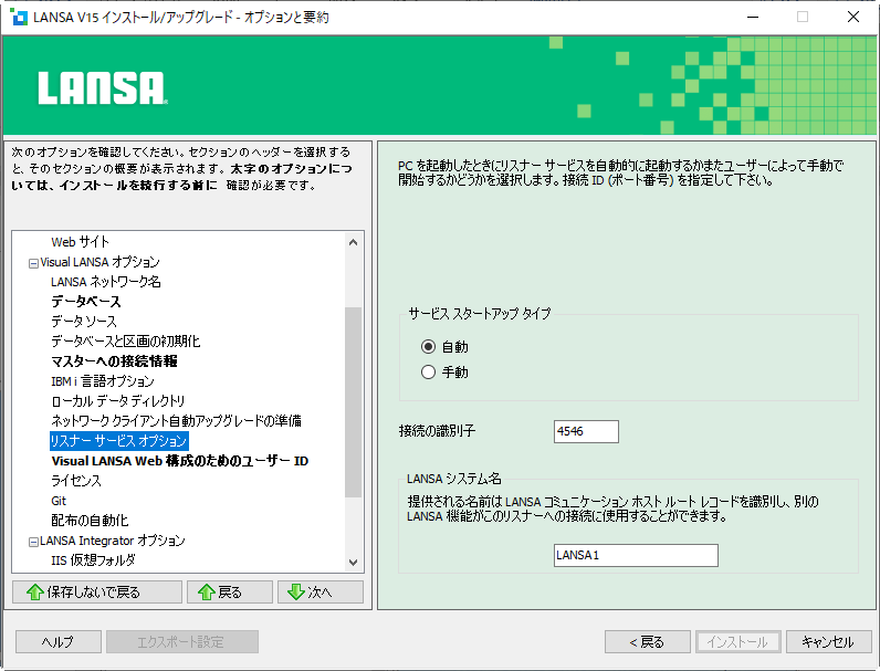 TCP/IPリスナー・サービス(Visual LANSAシステムとの通信に使用)を自動的に開始するか手動で開始するか指定します。