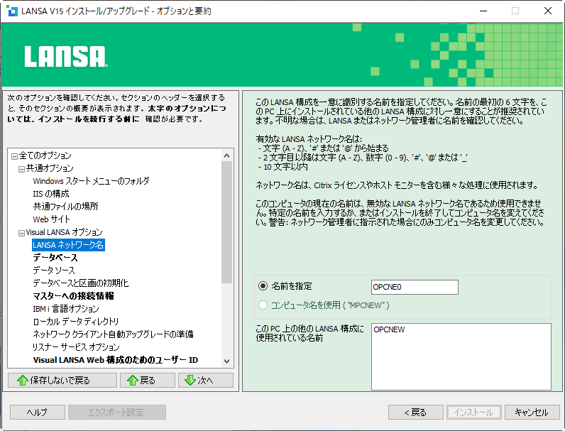 この LANSA ネットワーク名の最初の 6 文字は、PC と LANSA/AD マスター・システム内の両方で一意でなければなりません。