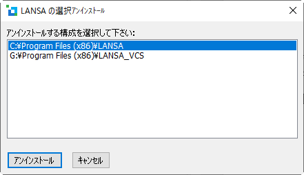 [LANSA 選択アンイストール] ダイアログには、PC にあるすべてのバージョンの LANSA がリストされています。