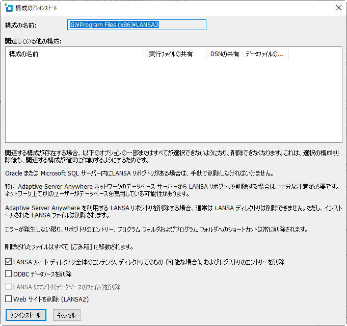 3. 削除する構成を選択すると、[構成のアンインストール] ダイアログが表示されます。