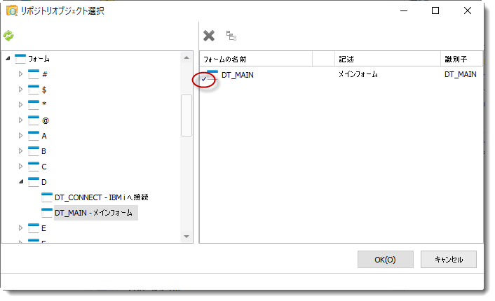 - ツールバーの [リポジトリオブジェクトの選択] ボタンをクリックします。