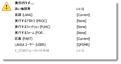 値が [Current] のパラメータは、このパッケージ定義時に使用した配布ツールが存在する LANSA 区画から値が取られます。このパラメータの多くは [Current] のままで構いません。