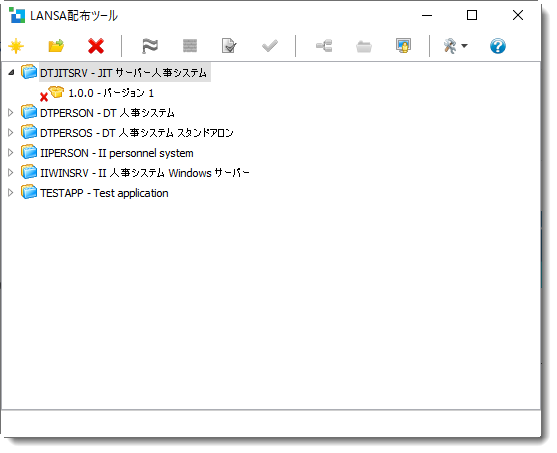 - メイン・ダイアログに既存のアプリケーションがリストされています。ここで、アプリケーションを展開してバージョンやパッチの内容を表示させたり、パッケージに「配布済」のフラグが立っていない場合は、コンテンツを編集することができます。