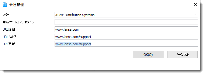 - [作成] ボタンをクリックして、会社 "ACME Distribution Systems" を定義します。代わりに適当な別の名前を使うこともできます。