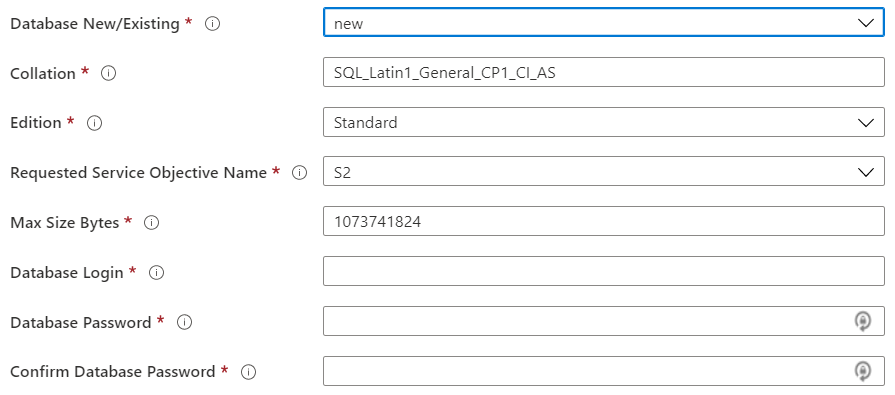 • デプロイの一部として新規にデータベースを作成するテンプレートが必要な場合、最初のパラメータとして New を選択します。