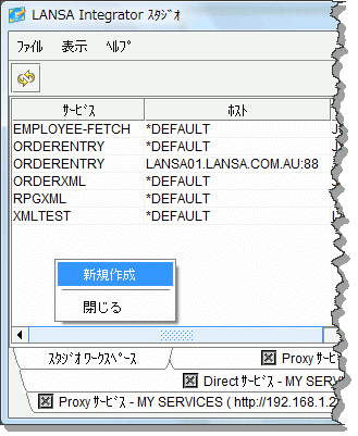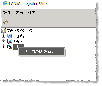 - Integrator スタジオを開いて [サービス] を選択し、右クリックで [サービスの新規作成] を選びます。
