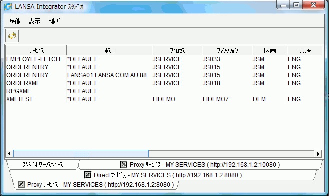 - 表示されるエントリーは、使用中の JSM サーバーに定義されたサービス (ある場合) によって異なります。