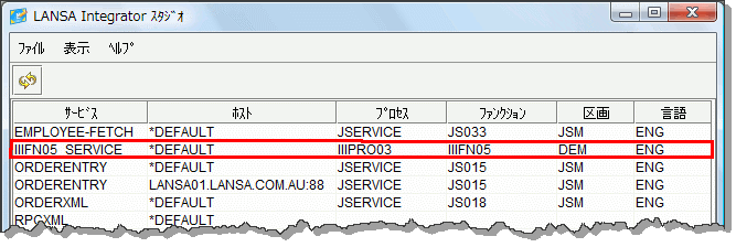 このステップでは、Integrator スタジオを使用してサービスを定義し、サービスとサーバー・ファンクションiiiFN03 の名前のエントリーを追加します。