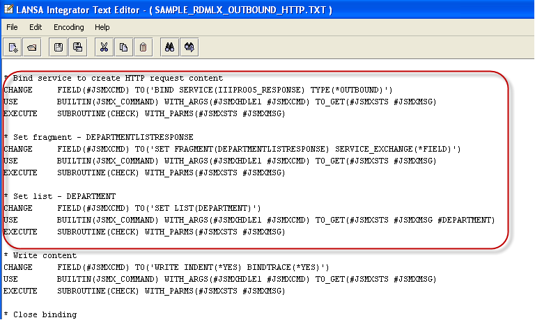 4. スタジオのプロジェクトで、フォルダ XML リスト応答/Samples/RDMLX を展開し、ファイル SAMPLE_RDMLX_OUTBOUND_HTTP.TXT をダブルクリックしてテスト・エディターで開きます。