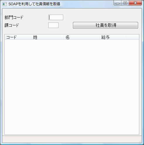 これは非常に簡単なフォームで、ユーザーは部門コードと課コードを入力して [社員を取得] というボタンをクリックします。