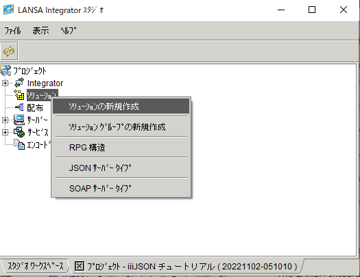 2. [ソリューション] フォルダを選択し、右クリックしてコンテキスト・メニューを開きます。