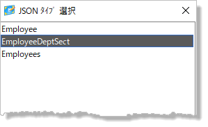 LANSA Integratorで JSON タイプの選択フォームが開きます。