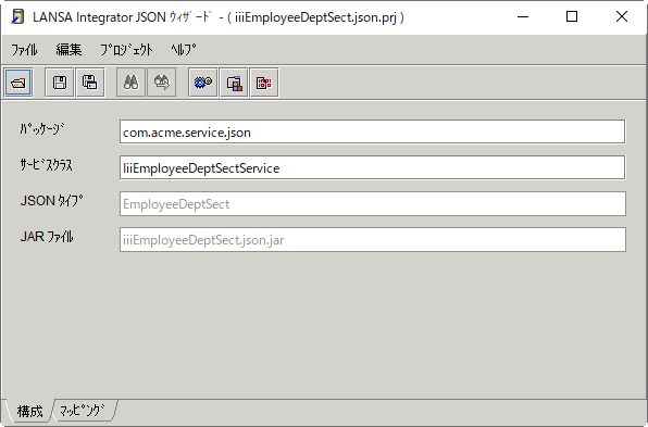 これは、ソリューションのJava実装ファイル生成時に JSON ウィザードが使用する名前です。ですから、ソリューションで一意にしてください。この演習では、com.iiicompany.service.json と入力します。