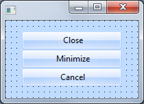 例には、メイン・フォームとフォームが閉じられるときに表示されるダイアログがあります。メイン・フォームには、OKとキャンセルの2つのボタンがあります。