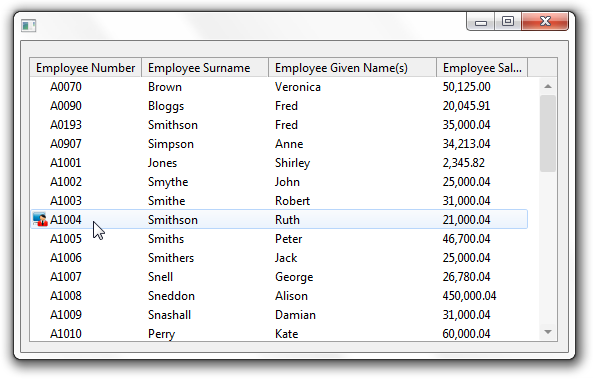 この例では、リスト・ビューに社員の詳細を組み込みます。アイコンは、リスト・ビューの選択された社員を表すために表示されます。