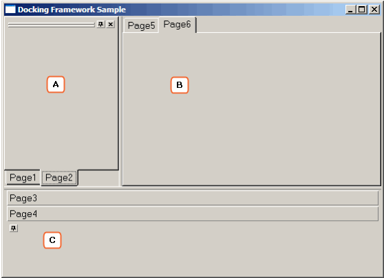 この例では、タブ・フレームワークには、実際のタブ・フォルダーの他に左と下に仮想タブ・フォルダーがあります。