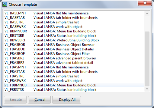 カスタマイズできる標準メニューを作成するには、VL_BBMNUBRテンプレートを実行します