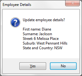 use builtin(MESSAGE_BOX_ADD) with_args('Update employee details?')