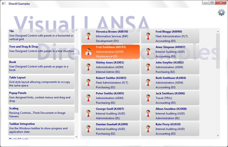 ユーザー・デザイン・コントロールは他のリスト・コントロールと同様に動作し、ツリー・ビュー、リスト・ビュー、およびグリッドと同じリスト処理ルールに従います。例えば、Add_EntryやUpd_Entryなどの標準のリスト・コマンドを使用して操作でき、フォーカス、選択、マウスオーバーなどビジュアルなリスト・コントロールに関連付けられた標準のイベントに応答できます。