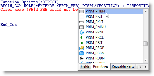 BEGIN_COM ROLE(*EXTENDS #PRIM_PHBN) CAPTION('Button A') DISPLAYPOSITION(1) HEIGHT(28) LEFT(0) TABPOSITION(1) TOP(0) WIDTH(128)