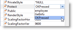 例えばOKPressedイベントを保護するには、祖先のフォームのProtectプロパティを選択し、値のリストからOKPressedを選択します。