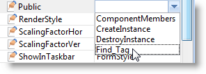 例えば、GetInfoメソッドを隠蔽するには、祖先のフォームのPrivateプロパティを選択し、値のリストからGetInfoを選択します。