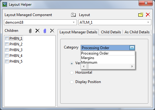レイアウトのプロパティを調整する必要がある場合があります。このために、[詳細]タブでレイアウト・マネージャのプロパティを設定できます。ただし、レイアウト・ヘルパーを使用したほうが、レイアウト・マネージャを簡単に操作できます。