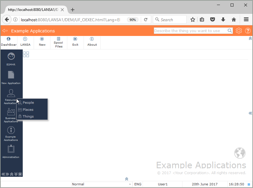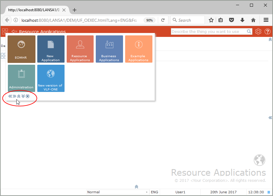 ドッキングされたナビゲーション・メニューの利用は、ブラウザのウィンドウに入りきらないほどのアプリケーション、ビュー、ビジネス・オブジェクトがあるフレームワークには適していないことを注意してください。