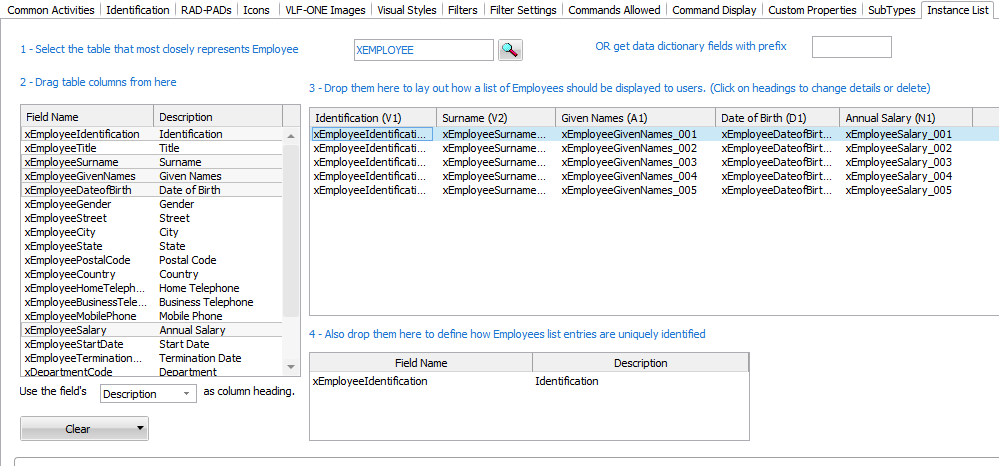 インスタンスリストのプロパティ管理が、ドラッグ・アンド・ドロップを使用するよう再設計され、ビジネス・オブジェクトと物理テーブルとそのテーブルの列に関連付けられるようになりました。