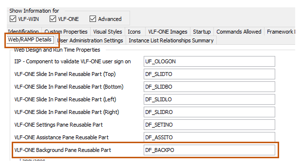 DF_BACKPO は、提供されているデモンストレーション・フレームワークの [Web/RAMP 詳細] タブに以下のように定義されています。