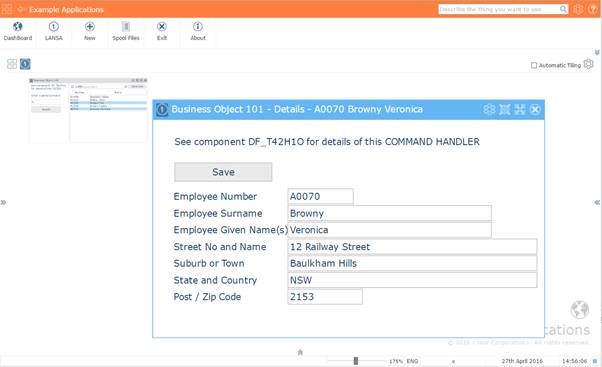 例えば、以下は提供のビジネス・オブジェクト 101 の例で、フィルターがかなり縮小されており、コマンド・ハンドラーも大きくズームされているのが分かると思います。