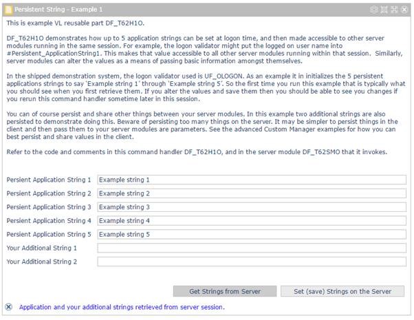VLF-ONE アプリケーションで使用されたログオン検証コントロールが 5 個までの永続文字列を戻すことができるようになり、その結果、同じセッション内で実行されている別のサーバー・モジュールにアクセスできるようになりました。
