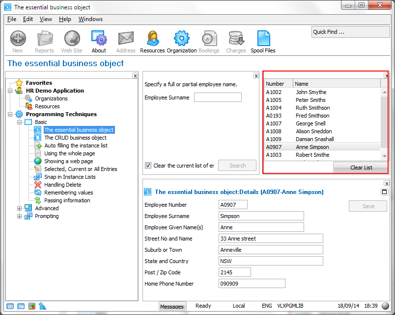 インスタンスリストは単にフィルターによって作成されたビジネス・オブジェクトのリストを表示するだけです。