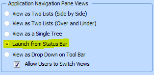 フレームワークがレンダー・タイプ "M" で実行されている場合、起動ボタン がステータス・バーのナビゲーション・ペイン・ビュー・ボタンの横に表示されます。
