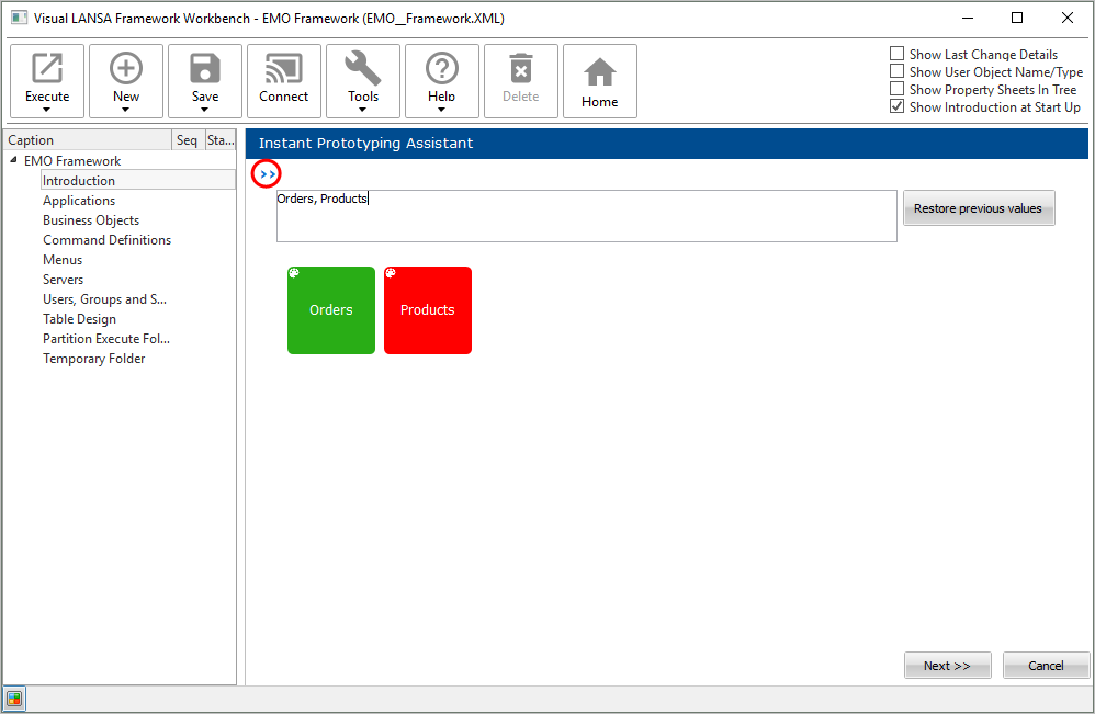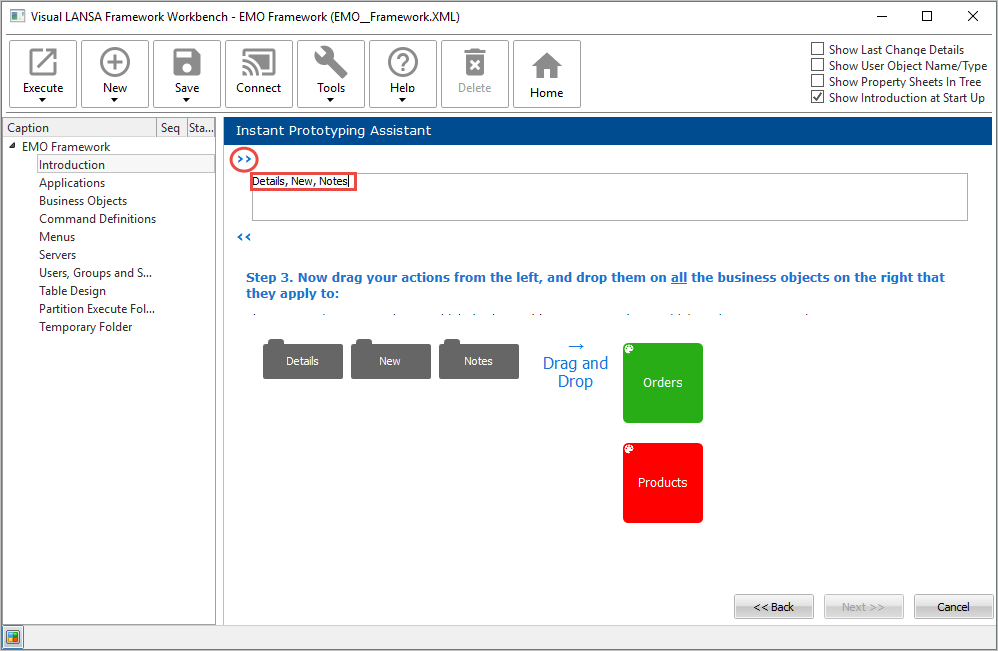 インスタント・プロトタイピング・アシスタントの詳細説明は、次のように矢印を使って非表示にすることもできます。
