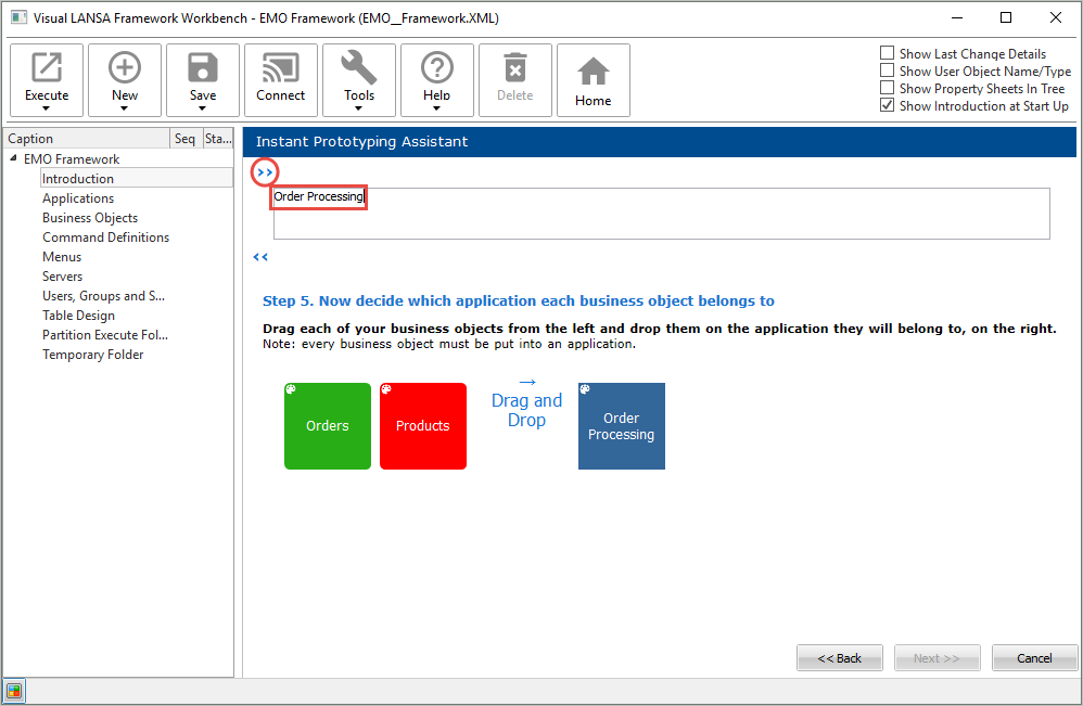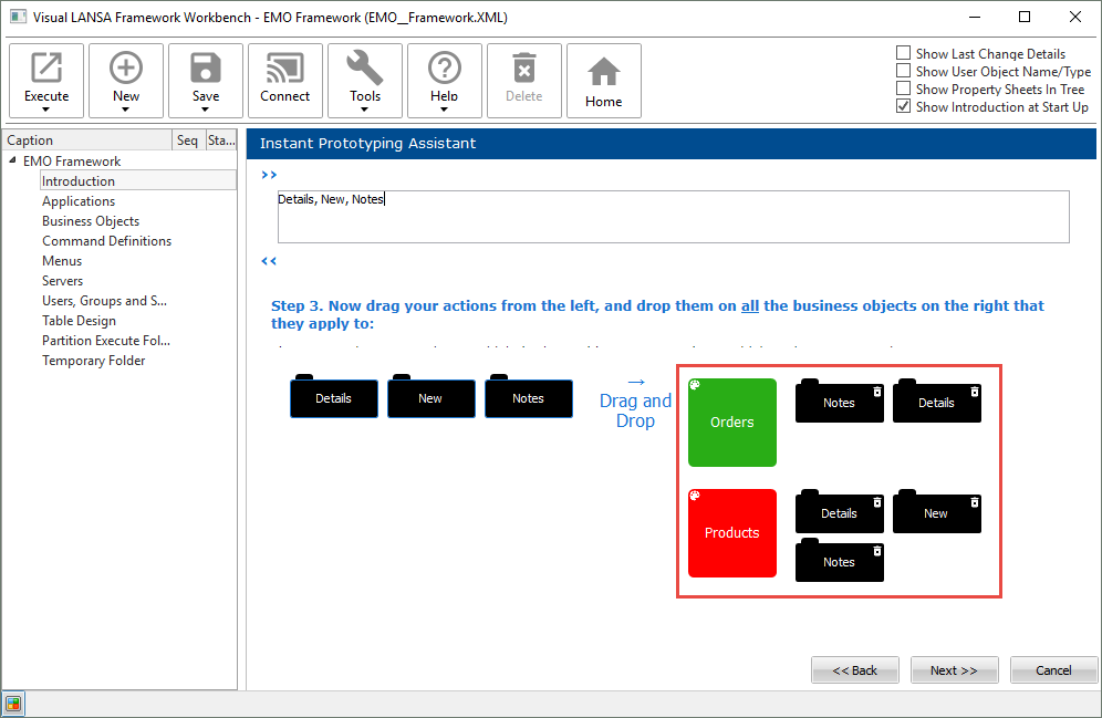 次にこのコマンドをビジネス・オブジェクトの上にドラッグ・アンド・ドロップします。