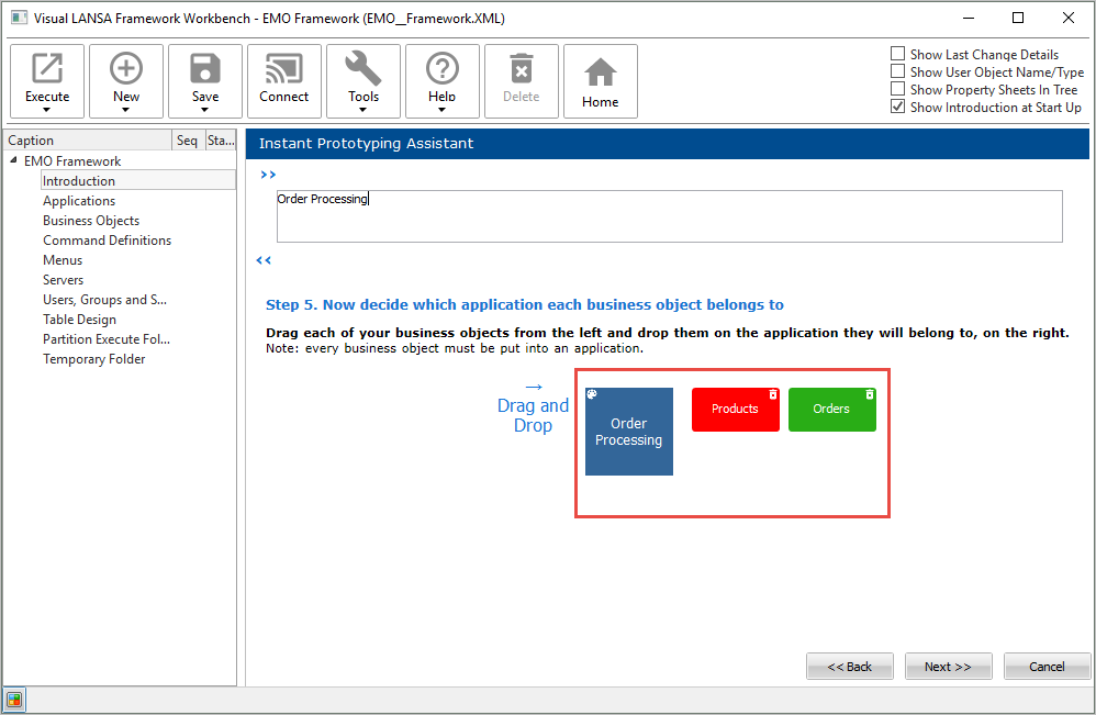 ビジネス・オブジェクトを属するアプリケーションの上にドラッグ・アンド・ドロップします。
