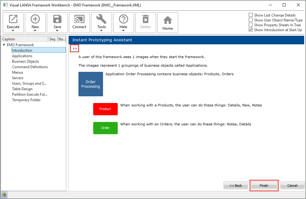 [次へ] をクリックします。[終了] をクリックしてプロトタイプを作成します。