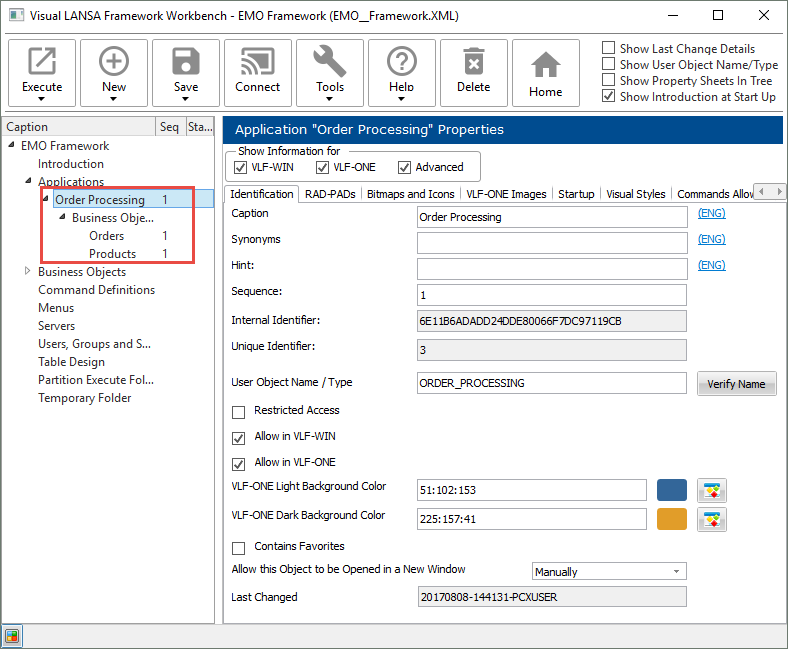 これで、作成したアプリケーションとビジネス・オブジェクトがワークベンチのナビゲーション・ツリーに表示されます。