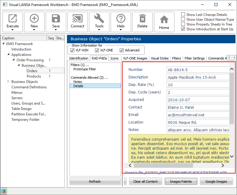 次に詳細用のコマンド・ハンドラーのプロトタイプを変更します。[すべてのコンテンツをクリア] ボタンを押して、イメージ・パレットをクリックし、コマンド・ハンドラーにイメージを追加します。 イメージを選択して、カーソルがクリアしましたという言葉の上に来るように、コマンド・ハンドラー上にドラッグして、ドロップします。