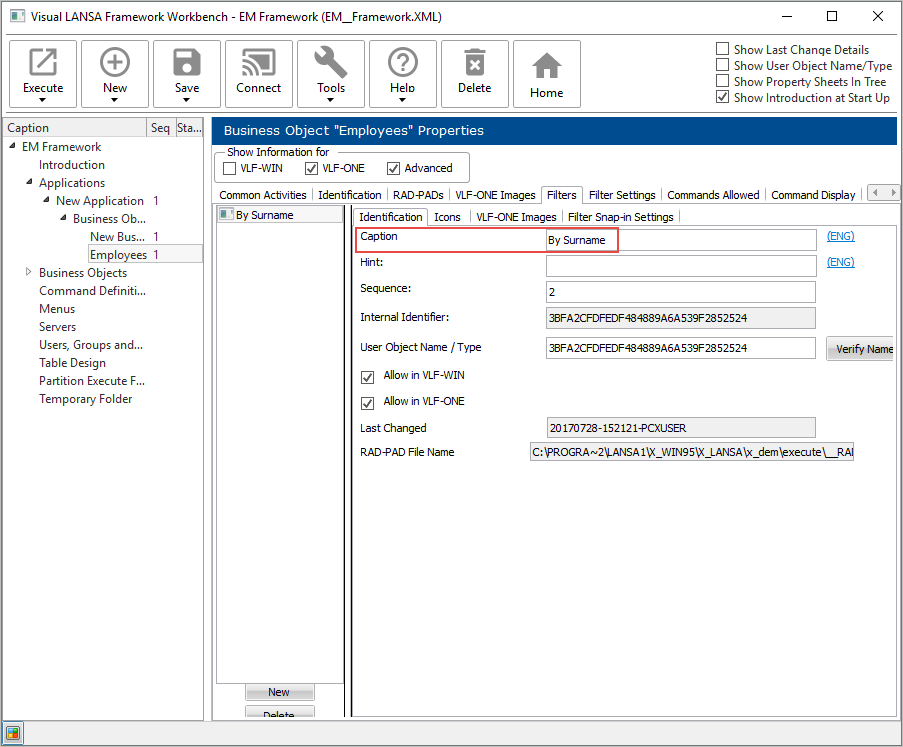 このフィルターのキャプションを By Surname: にします。