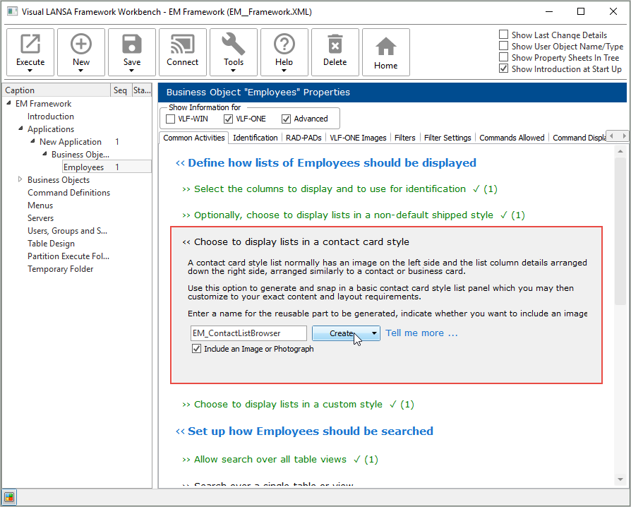 ワークベンチで [リストの連絡先カードスタイル表示を選択] を選択し、[作成] 、そして [作成のみ] をクリックします。