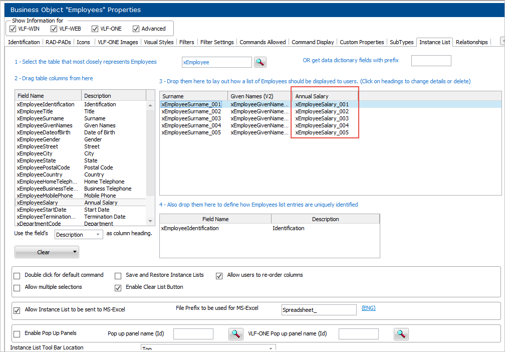 ここでも住所関連のフィールドを xEmployeeSalary フィールドに置き換えます。