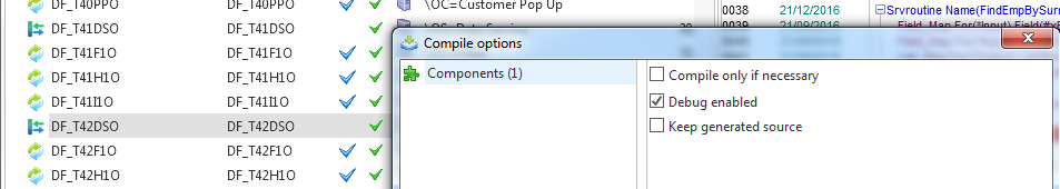 再利用可能パーツまたはサーバーをデバッグにチェックを入れて、コンパイルします (ここでは DF_T42DSO) 。