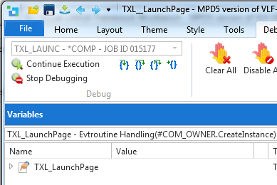最初のデバッグ可能なコンポーネントがあると、Visual LANSA エディターが起動します。