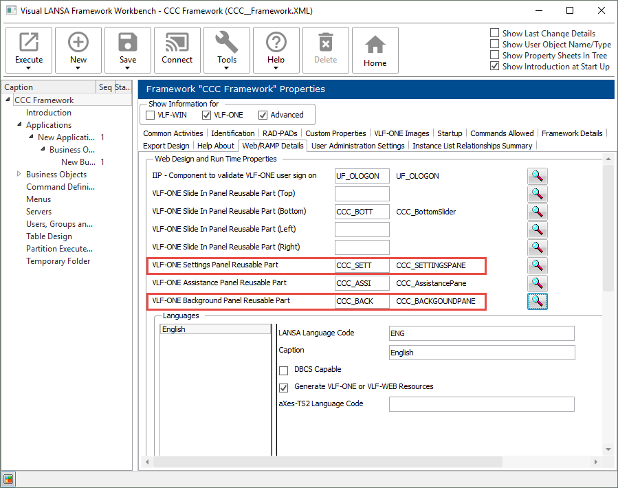 ワークベンチでこのフレームワークの [Web/RAMP 詳細] タブを表示します。パネルはここにスナップインされています。