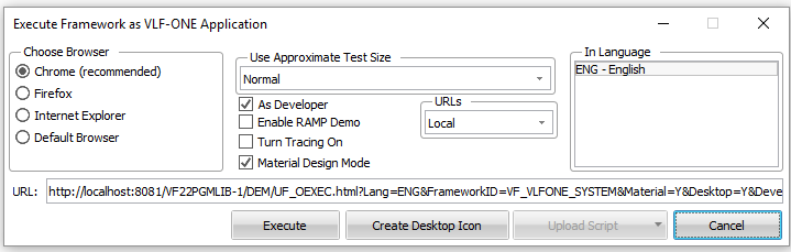 ここで、[VLF-ONE アプリケーションとしてフレームワークを実行] ダイアログで [実行] をクリックして、自身のフレームワークを開始します。